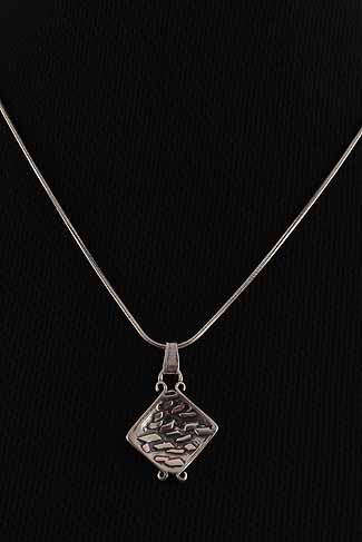 Chain: 17 in. long; Pendent: 1.5 in. long, 1 in. wide.