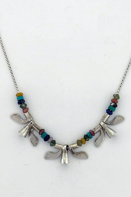 Casual sterling silver, handcrafted, beaded necklace with multi semi precious stones.