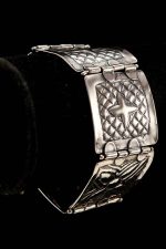 An amazing wide, sterling silver jewelry – bracelet that focuses on the meaning of the word designer jewelry. It is hand crafted, alternating bracelet designed with an oxidized lines to bring and point on the unique aspect of this jewelry bracelet’s lines.