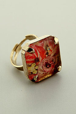 Ring Top: 0.8 in. by 0.89 in. Band: 0.25 in. wide. Adjustable Ring. Fit Rings Sizes 7-8. *Roses Colors in Photos may very.
