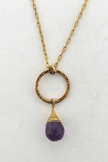 Fashionable, gold-filled necklace representing circle of life with an Amethyst stone to a finish.