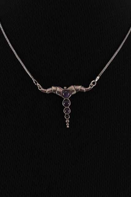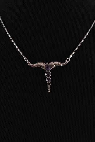 Hand made, sterling silver necklace with Amethyst stones. From our contemporary collection.