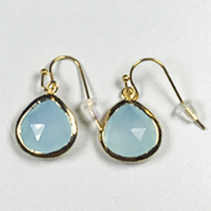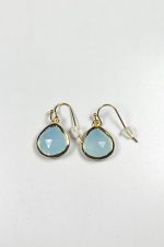 Teardrop earrings with Aqua Calci stones sets in gold-filled frame.