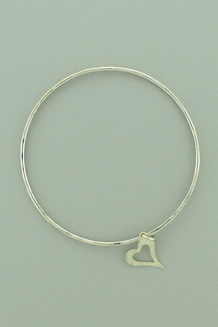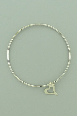 Contemporary, sterling silver bangle with a heart sterling silver floating charm.
