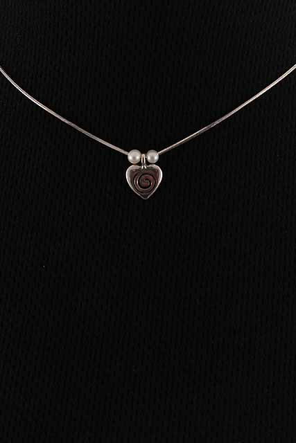 Hand made, sterling silver necklace with a heart and white pearls.