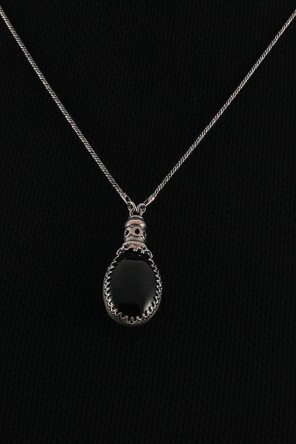 Hand made, sterling silver oxidized necklace with oval Onyx stones.