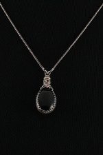 Chain: 21 in long; Pendant: 1.75 in. long to 0.8 in. wide.