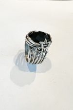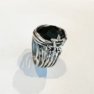 Sterling silver ring made of multi wires. Three stars on the upper side and black Onyx oval stone.
