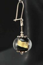 Like every small work of art this bold and black glass beads with a zest of gold have an effect of standing out. This Israeli artist designed this jewelry glass globe with sterling silver wires for higher qualities for price and durability.
