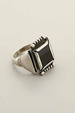 Hand made, sterling silver, black Onyx stone mounted in a sterling silver frame.
