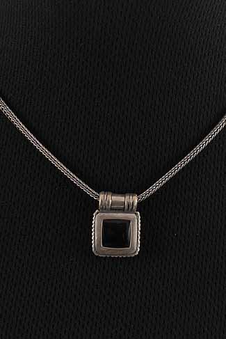 Hand made, sterling silver oxidized thick necklace with Onyx stone.