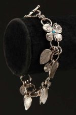 The head – turning, unique and fabulous, sterling silver bracelet with silver butterfly, silver dangling leaves and Opal stones is unique and can be worn for any occasion.