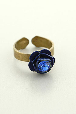 Hand made Blue single rose ring with dark Blue Swarovski Crystals in Hypo Allergic metal.