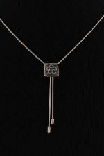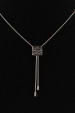 Chain: 16 in. long; Pendent: 2.25 in. long, 0.5 in. wide.