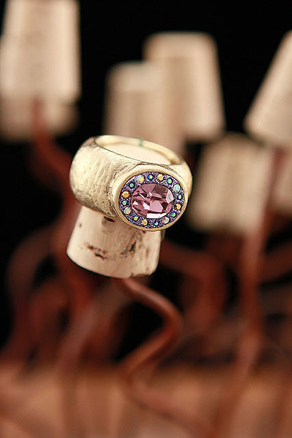 Hand made, 24K gold plated on top of sterling silver of fashion band with Amethyst Swarovski Crystal stones.