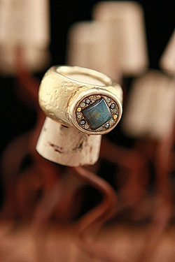 Hand made of 24K gold plated on top of a sterling silver band with Labradorite and Swarovski Crystal stones.
