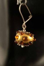 Hand made glass globe that will make your ears glow when you wear that beautiful set of earrings. This golden shades added to the brown colors in this hand blown glass gives it the sparkle boost that suits any occasion. The sterling silver hanging wires is to keep the high quality standards that we carefully maintain in our site.