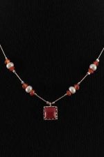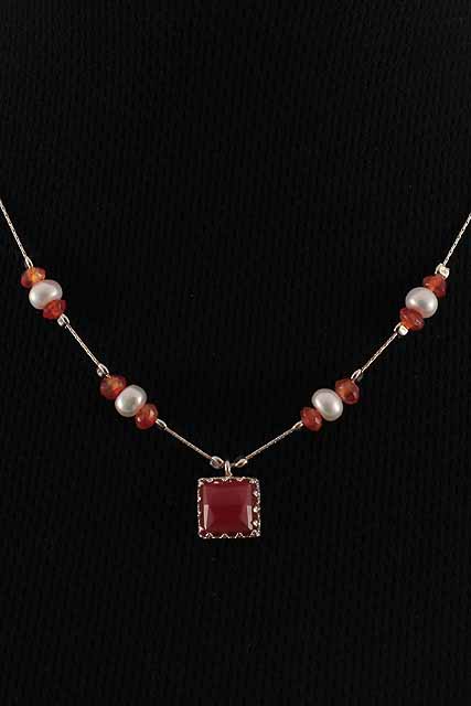 Hand made, sterling silver necklace with white pearls and Carnelian stones necklace.