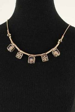 Fleuree sterling silver necklace with alternating square Moon stones. This is a casual jewelry necklace that carries a permanent blooming and a message of blessing to any women.
