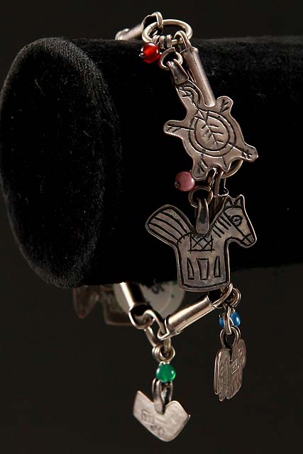 Hand made, sterling sliver, animal charms of a multi semi precious stones bracelet.