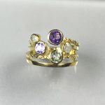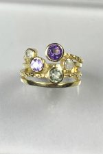 Multi colors semi precious stones sets in gold-filled band.