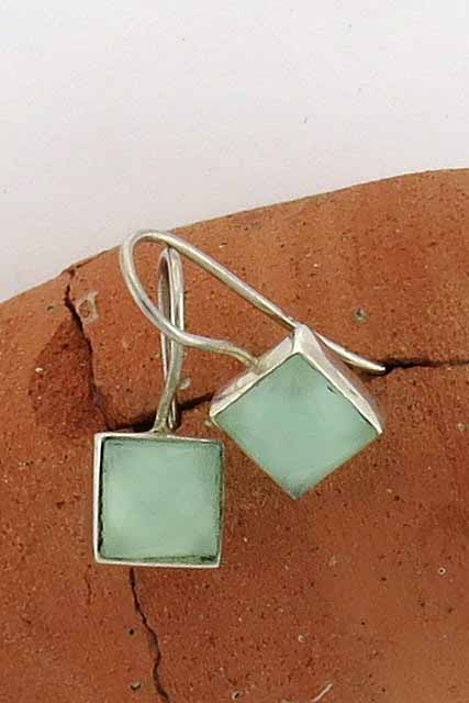 Traditional, sterling silver, square earrings with square apple Quartz stones and a French wire in back.