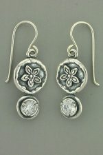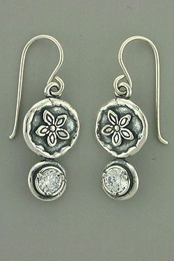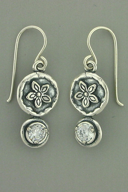 Hand made, hanging sterling silver flower earrings with clear crystals.