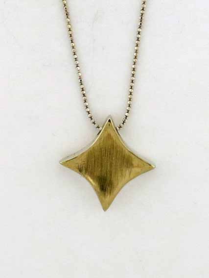 Two tone necklace with sterling silver chain and gold pendent framed with sterling silver.