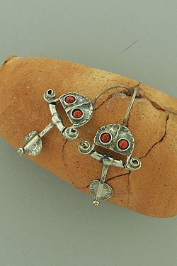 Sterling silver woman figure earrings with Sponge Coral eyes.