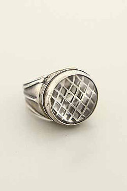An exquisite sterling silver, contemporary ring with a see through glass on top to show case the art expression that one tries to deliver. This unique ring is a statement to the world. I’m cool, I’m different, I’m like no one else.