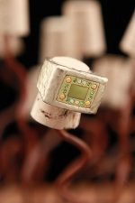 This jewelry ring is sophisticated and updated jewelry fashion style. A new look of Lemon Jade crystals silhouettes stones that are sets on 24K gold on handcrafted sterling silver.