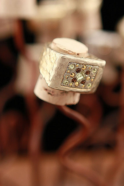 Hand made, 24K gold plated on top of sterling silver band with Gold and brow Swarovski Crystal stones.