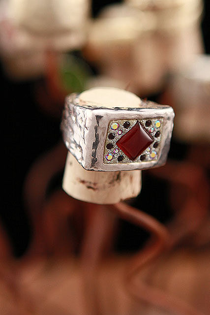Hand made, sterling silver, fashion band with Carnelian, Garnet and AB Swarovski Crystal stones.