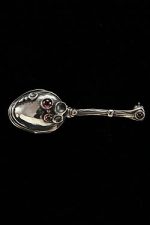 The art deco of the sterling silver pin-brooch is an expression of different use to things in our lives. Spoon can be use for feeding but makes also amazing modern jewelry piece, especially when adding semi precious stones such as Garnets.