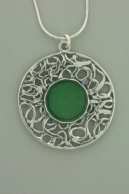 Hand made, sterling silver chain with sterling silver diagram and Aventurine stone in center.
