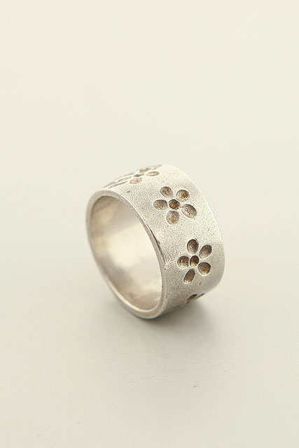 Accelerate the fun with jewelry performers of a wide sterling silver ring band with flower prints on it. Size the jewelry season with permanent flowers of blooming that never dies.