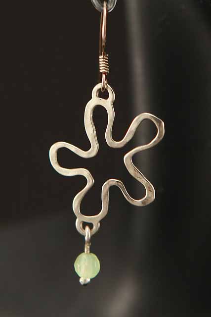 Hand made, sterling silver, hanging earrings with Apple Quartz stones.
