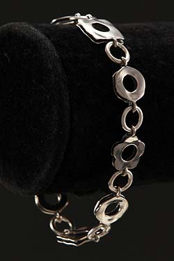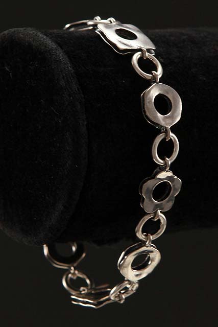 Hand made, double layered, geometric and flower sterling silver bracelet.