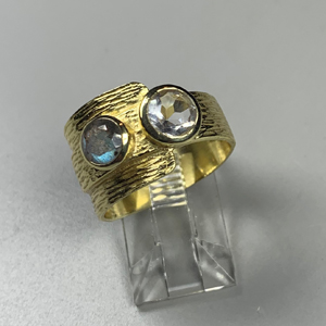 Striped Gold-filled band in variable width with Labradorite and Clear Quartz stones.