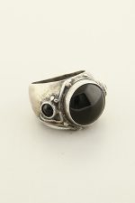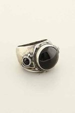 Hand made, sterling silver with three Onyx stones on an oxidized ring.