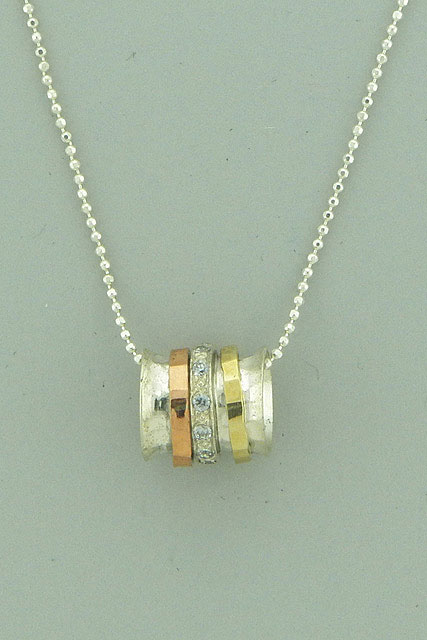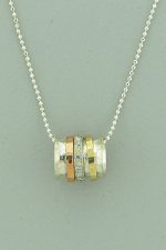 Sterling silver necklace with sterling silver burrell pendent acompany with two tone gold rings around it.