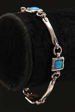 We are pleased to provide you with an amazing sterling silver, handcrafted, Israeli unforgettable bracelet. We offer creative and unusual selection to wear. Choosing this bracelet with blue Opals stones is a decision that you will never regret even ten years on.