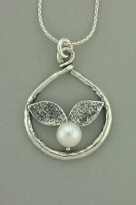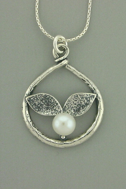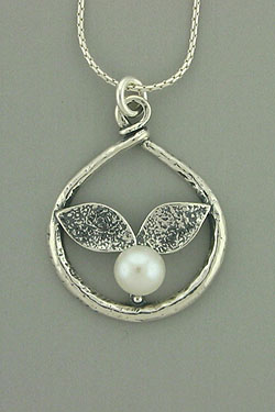Hand made, sterling silver necklace with round circle and a white pearl.