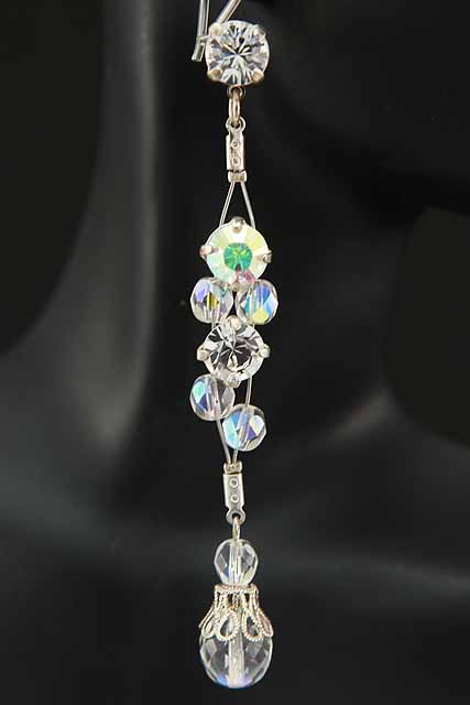 Hand made, long silver post earrings with white and diamond Swarovski Crystal stones.