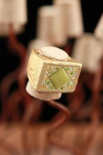 Hand made, 24K gold on top of a sterling silver, fashion band with Lemon jade and Swarovski Crystal stones.