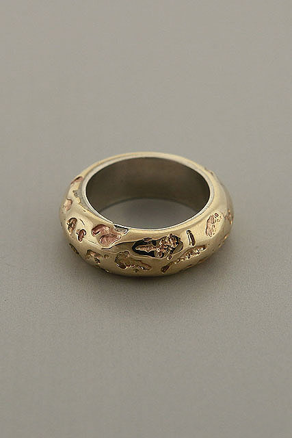 Hand made, two tone, round band with a gold textured layered on sterling silver band.