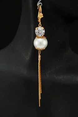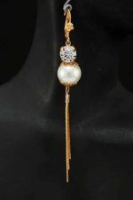 Fashion, gold plated, hanging earrings with white pearl beads and Swarovski Crystal stones.