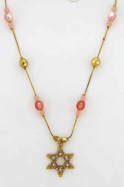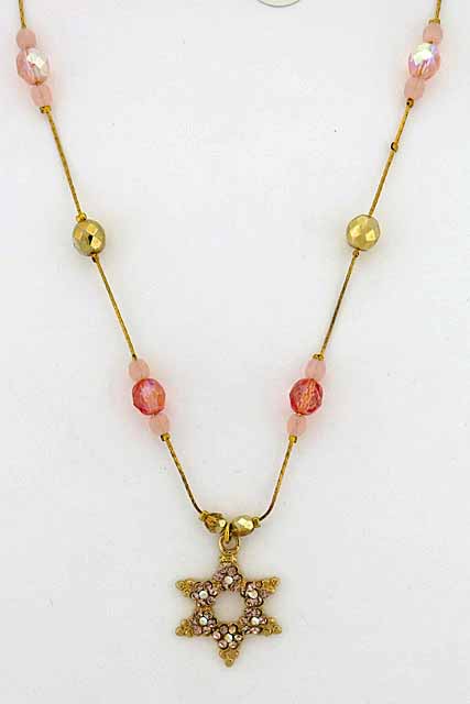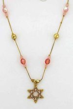 Gold imitated jewelry necklace combining a fashionable piece of jewelry with religious of a star David to its glory.