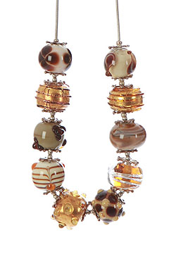 Mixed of milky glass beads combined with Brown and gold glass beads, on a sterling silver chain.