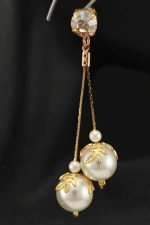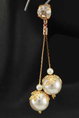 This double time fashion earrings is trendy with white pearls fusion. It is gold plated with pearl stones on post earrings that its colors are going with everything. With this classic color image you get your fashion style right.